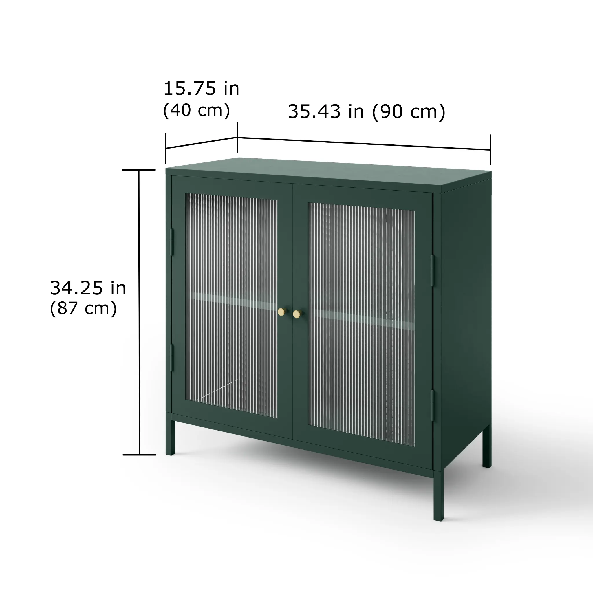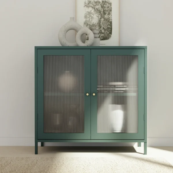 This dark green accent cabinet features clean lines, fluted glass doors, and versatile storage options to enhance any room in your home.